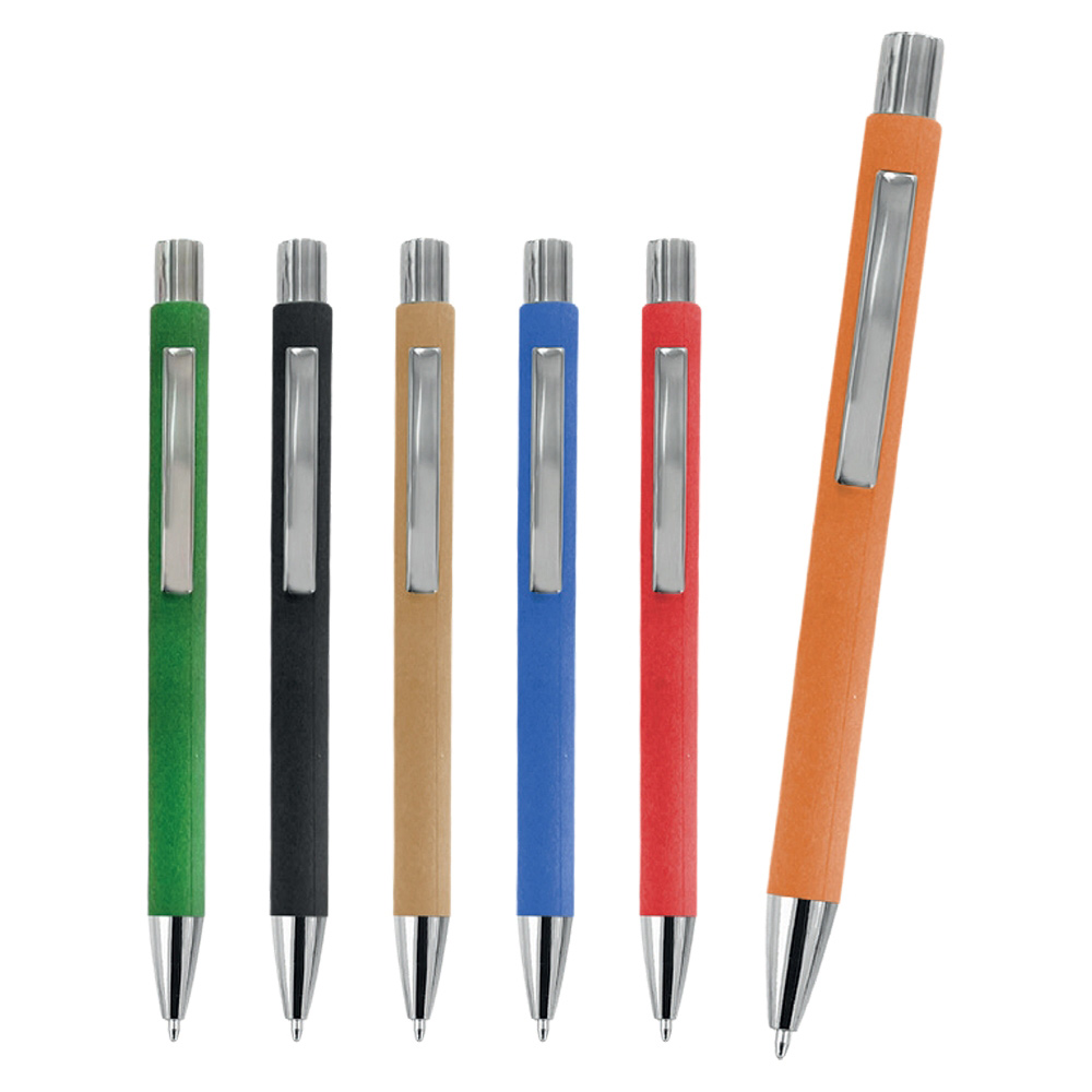 Basmalı tükenmez kalem Krom kaplama İnce tip refil Mavi renk mürekkep Doğa dostu karton gövde