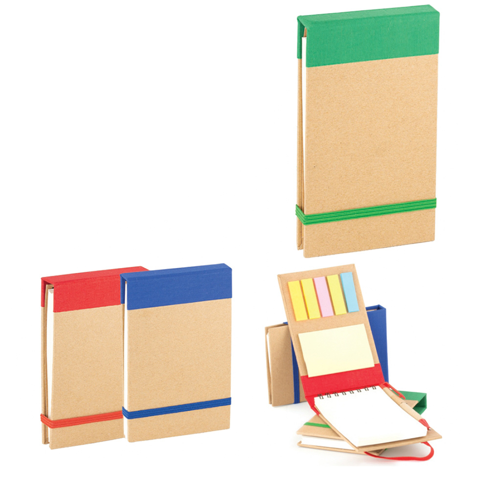 Geri dönüşümlü bloknot Kraft kapak Kalem takma yeri Çizgisiz sayfa Renkli yapışkanlı not kağıdı 14,5 x 9 cm 65 yaprak
